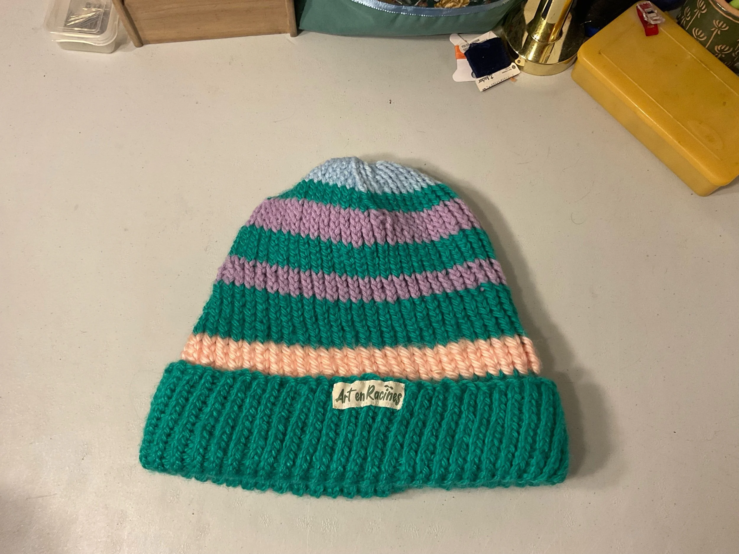 1 tuque tricoté à la main